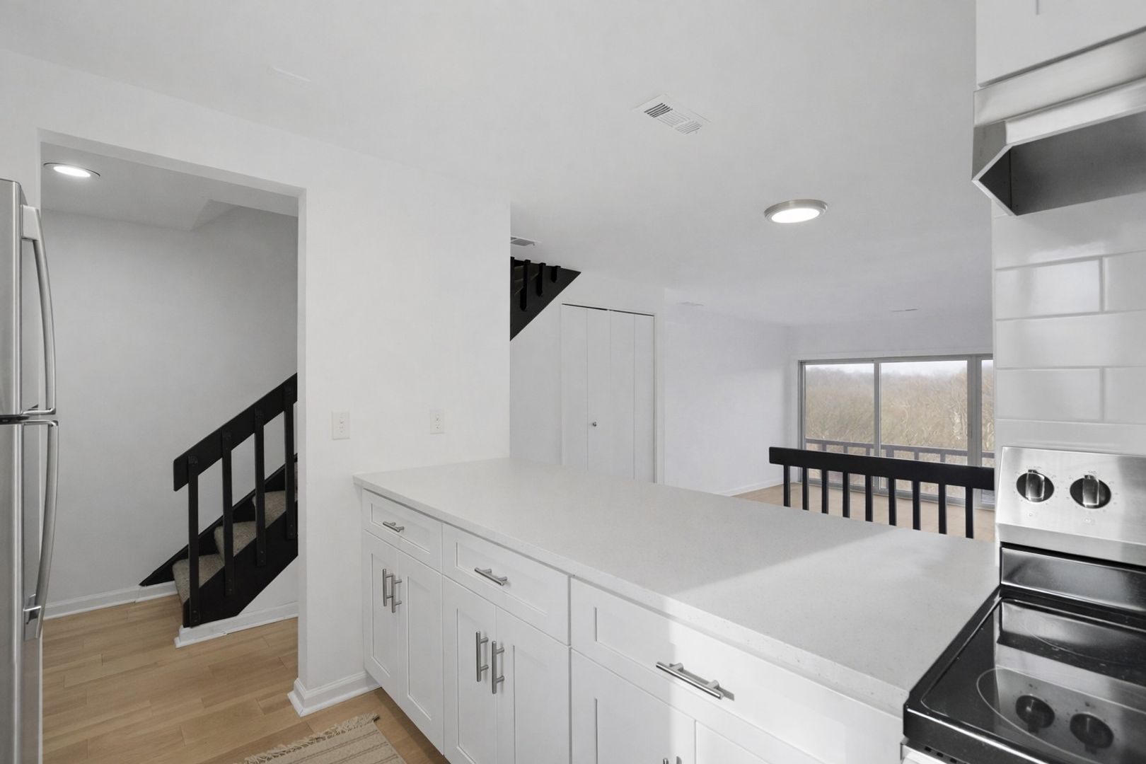 Designer Kitchen: Cook and entertain in style with brand-new quartz countertops, sleek cabinetry, and a full suite of stainless steel appliances (range/oven, refrigerator, and dishwasher).